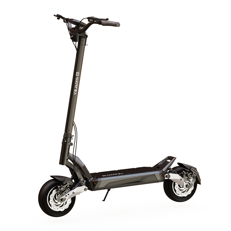 OKULEY M1 All Terrain Electric Scooter on varustettu 10 tuuman pneumaattisilla renkailla, jotka tarjoavat erinomaisen pidon ja ajomukavuuden. Sen ainutlaatuinen muotoilu mahdollistaa sen nopean purkamisen. Helppo huoltaa. Etu- ja takajousen iskunvaimentimet voivat lieventää epätasaisten teiden iskuja. Lisäksi se tarjoaa myös levyjarru- ja hydraulijarruvaihtoehtoja turvallisuuden parantamiseksi.